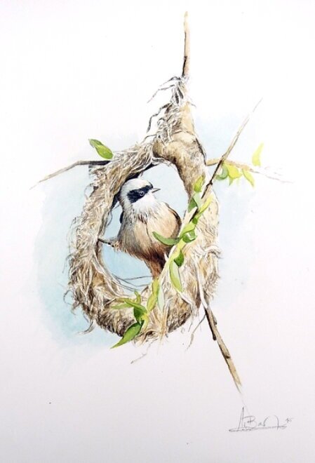 Bei einem meiner Rundgänge sah ich etwas ungewöhnliches in einer Weide. Es sah aus wie ein Körbchen. Ich konnte es kaum glauben, eine Beutelmeise hatte mit dem Nestbau begonnen. Es war eine Freude zu beobachten, wie der Nestbeutel immer mehr Form annahm und sie später zum Füttern in eine kleine Röhre einflogen. Im Folgejahr waren die Beutelmeisen auch wieder an der gleichen Stelle zu finden. Danach leider nicht mehr.