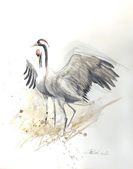 Wenn sich ein Kranichpaar findet dann mit lauten Rufen und Tänzen.